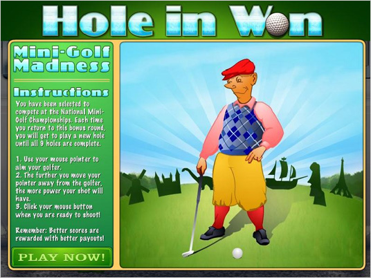 NEW A truly skill-based bonus round. Players will receive higher payouts based on their skill and practice in our brand new Mini Golf bonus round! Hole in one will receive top payout, and each shot afterwards will receive a lesser payout.